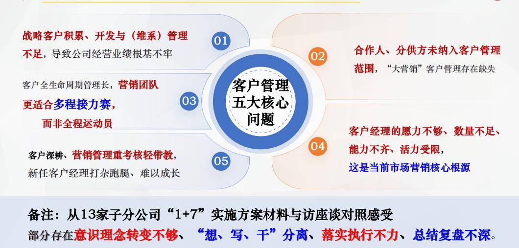 此外,围绕诊断发现、行业趋势、优化建议等核心内容,组织公司主要领导、营销分管领导、子分公司总经理及营销负责人开展高层研讨会与专题讲座,凝聚变革共识,明确行动方向,确保方案落地执行。