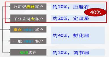 制定“三年目标”:将战略及大客户贡献占比从当前10%提升至40%,确立“总部直管战略客户项目”的管理模式,形成“20%压舱石(公司级战略客户)+20%定盘星(子分公司大客户)+40%孵化器(重点客户)+20%调节器(渠道客户)”的合理客户结构。